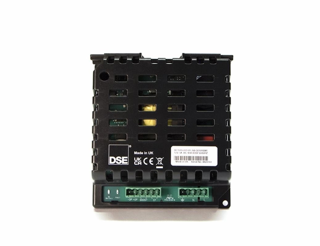 The DSE BC1205 is designed to be permanently connected to a battery, to ensure it maintains a full charge. The charger includes LED indicators on the front that show when there is no battery connected and if a fault condition is present.